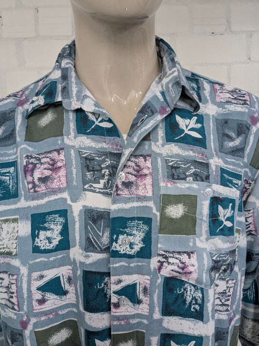 Vintage 80-90's C.C.Concord overhemd. Groen Paars Grijze print. Maat 2XL / XXL.