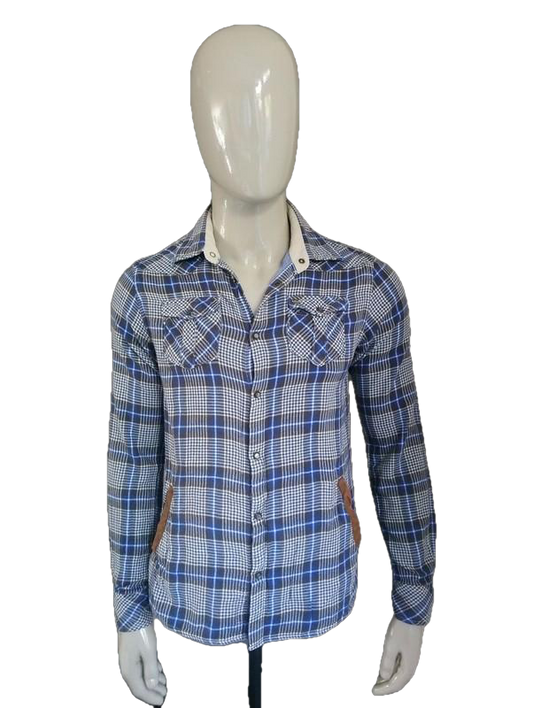 The Truth jack / overhemd met drukknopen. Donker Blauw Wit gestreept. Maat M.