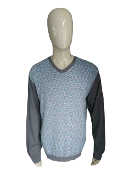 Riley Wollen gilet. Donker Blauw motief. Maat 54 / L. 70% Wol. #332