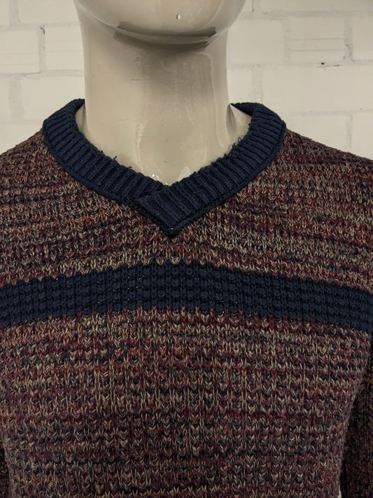 Vintage st. Michael trui met V-Hals. Rood Blauw gekleurd. Maat L.