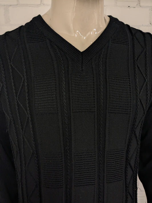 Vintage trui met V-Hals. Bordeaux Zwart Grijs gemêleerd. Maat XL.