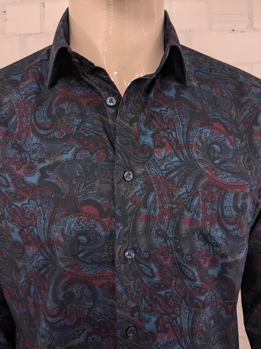 Marvelis overhemd. Blauw Rood Groene print. Maat L. modern fit.