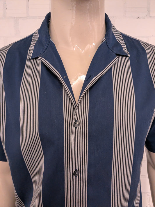 NEXT Resort Leisure overhemd korte mouw. Grijs Blauw gestreept. Maat L. slim fit.