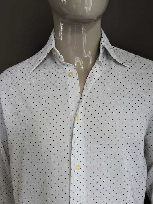 Vintage 70's overhemd met puntkraag. Wit groen gestippeld. Maat L.