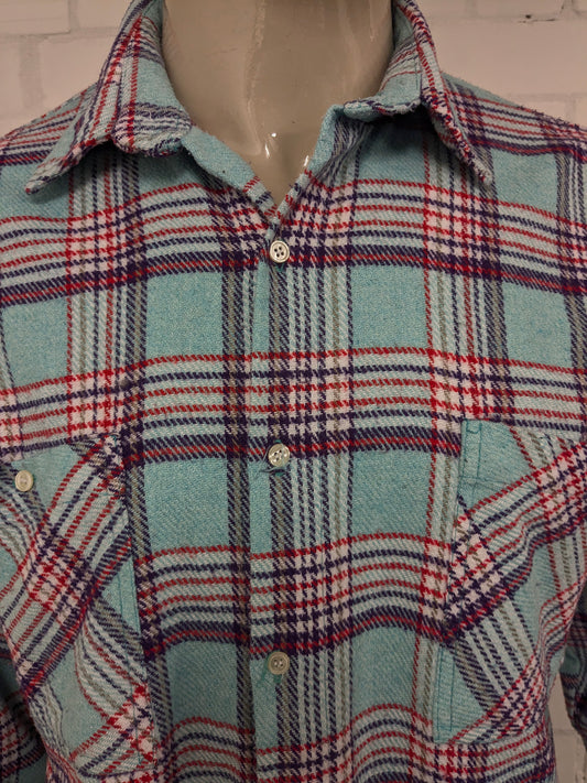 Vintage Logic Flanellen overhemd. Blauw Rood Paars geruit. Maat XL.