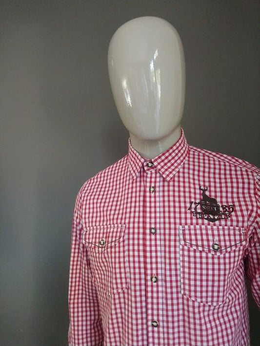 Landhaus vintage overhemd. Rood Wit geblokt. Maat M