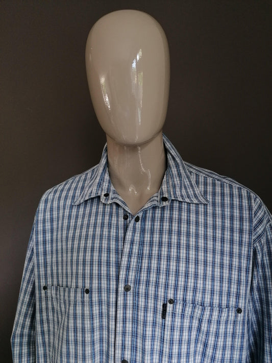 Blue One overhemd. Blauw Beige. Dikkere stof. Mt. XXXL / 3XL