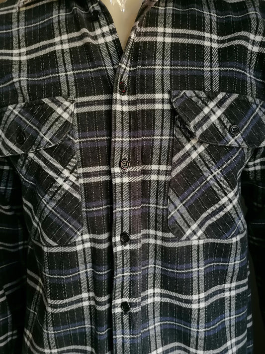 Vintage Collobello Flanellen overhemd. Zwart Wit Blauw geruit. Maat S.