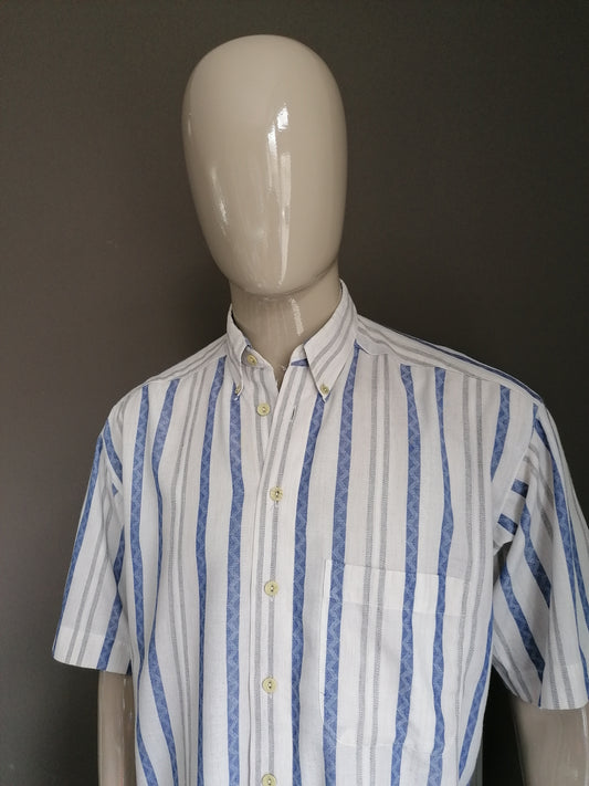 Culture Vintage overhemd korte mouw. Beige Blauw. Maat L