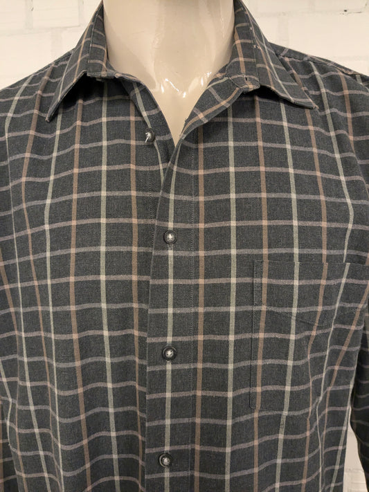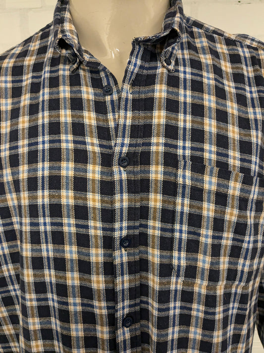 Vintage Cambier Flanellen overhemd. Blauw Bruin Wit geruit. Maat XL.