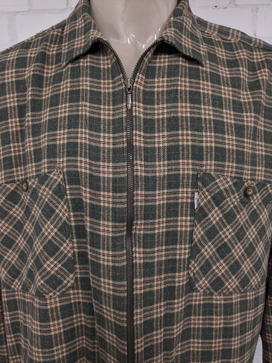 Vintage Love Flanellen overhemd met rits. Beige Groen Bruin geruit. Maat 2XL / XXL.