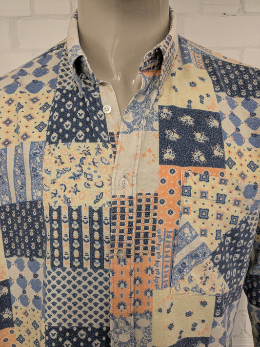 Vintage Counsil Flanellen overhemd. Blauw Roze Groen Beige print. Maat 2XL / XXL.