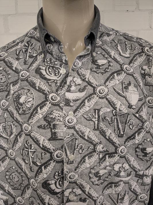 Vintage Double Duty overhemd. Grijs Zwart Witte print. Maat 2XL / XXL.