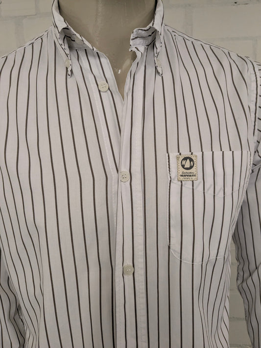 Murphy & NYE overhemd. Wit Bruin gestreept. Maat M.