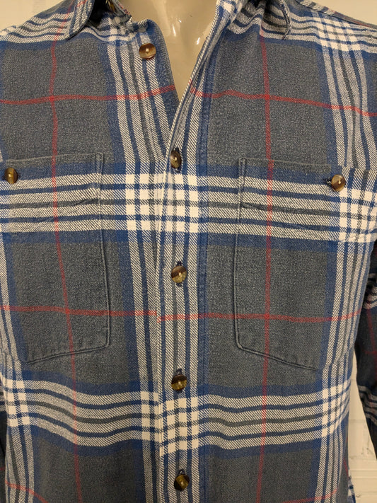 Vintage New Fast Flanellen overhemd. Blauw Rood Wit geruit. Maat M / L.