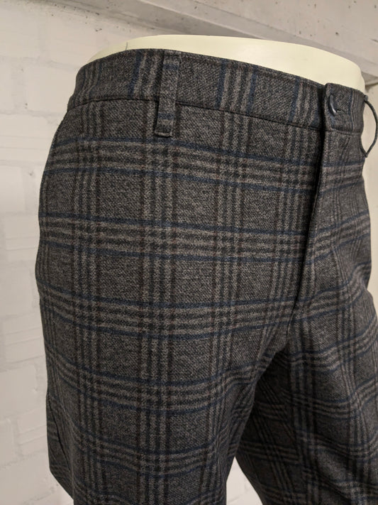 Alberto broek / pantalon. Grijs lauw Bruin geruit. Maat W36 - L34. Jersy slim fit.