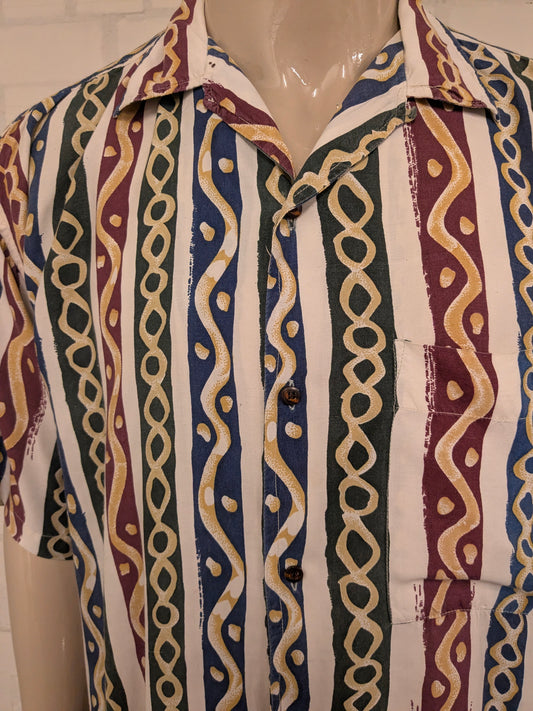 Vintage Pepe 80-90's overhemd korte mouw. Bordeaux Groen Blauwe print. Maat 2XL / XXL.