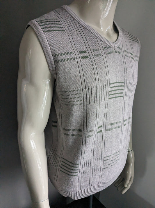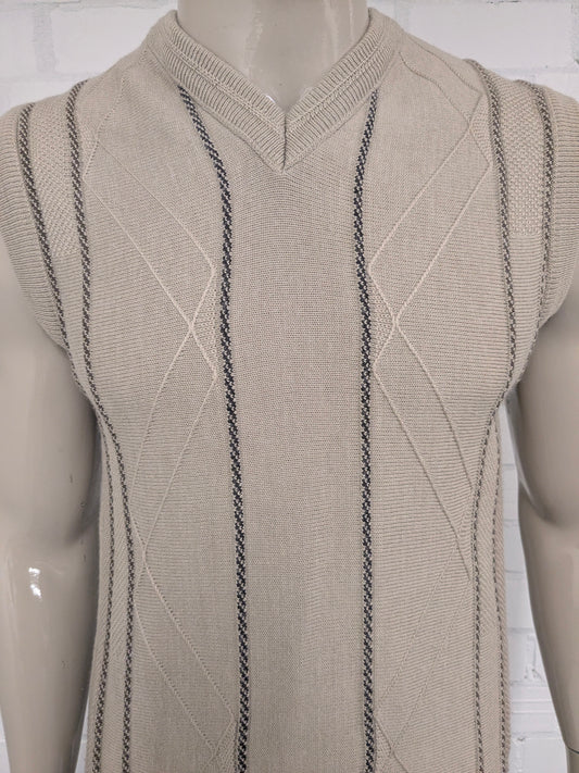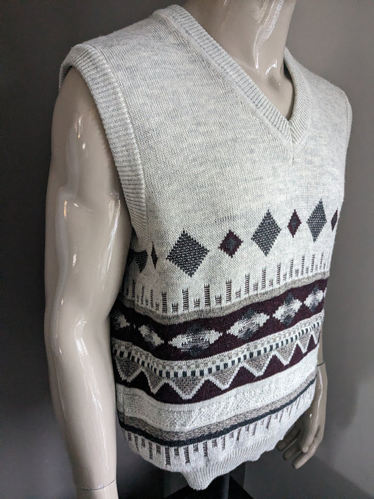 Vintage Wollen Frank Alexs spencer met V-Hals. Beige Groen Geel Paars gekleurd. Maat XL.
