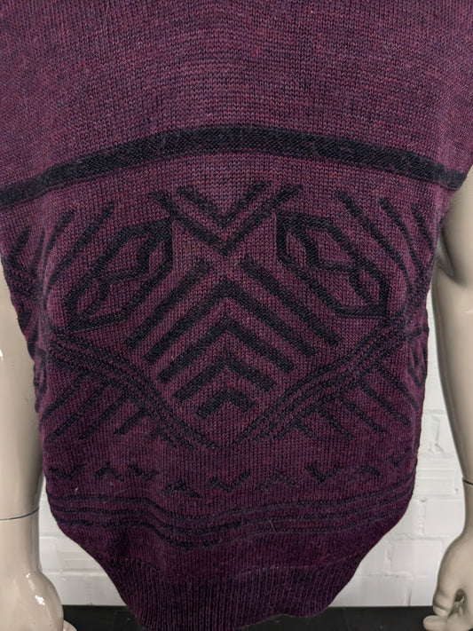 Vintage Wollen spencer. Paars Zwart gekleurd. Maat XL. 30% Wol.