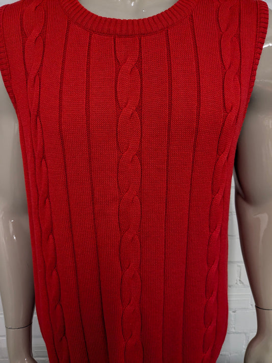 Lucia Wollen spencer. Rood kabel trui motief. Maat L. 50% Wol.
