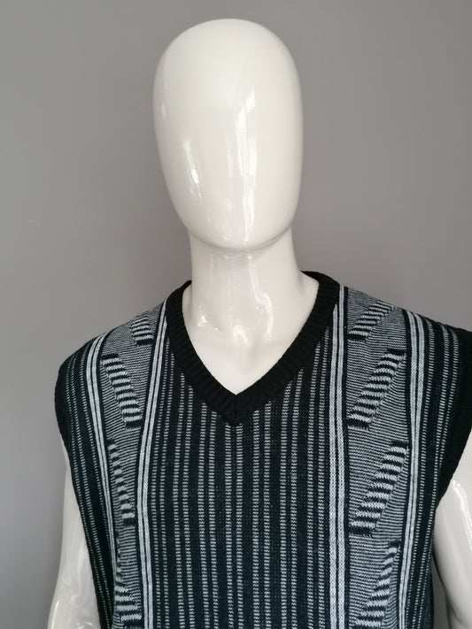 Vintage spencer / slipover. Zwart Wit motief. Maat XXL / 2XL
