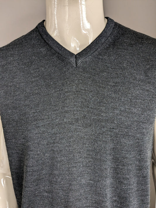 Point Wollen spencer met V-Hals. Donker Grijs gemêleerd. Maat 56 / XL.