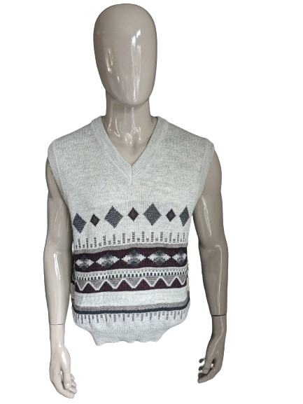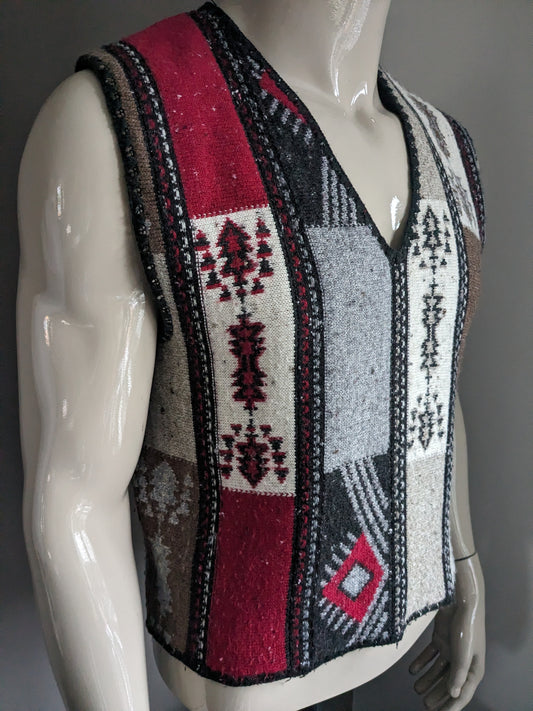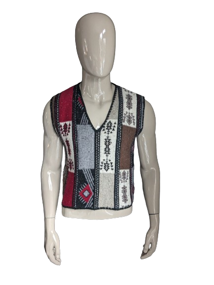Marc René Wollen spencer met V-Hals. Grijs Rood Geel gekleurd. Maat L.