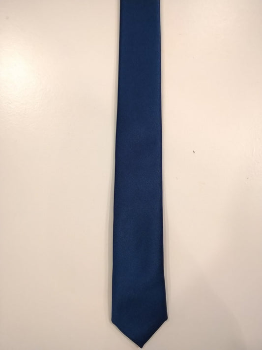 Extra smalle vintage zachte polyester stropdas. Glanzend blauw.