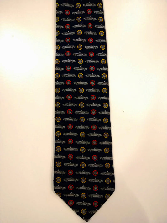 New Boston zachte polyester stropdas. Blauw met mooi oldtimer auto motief.