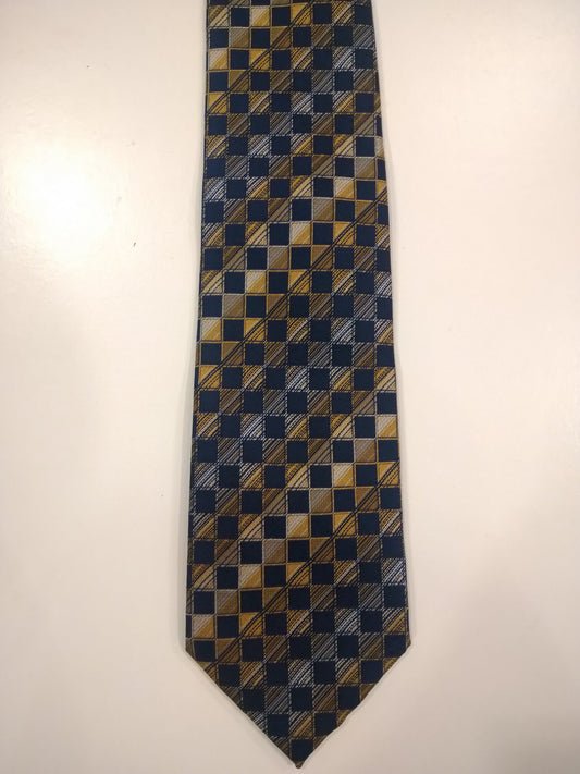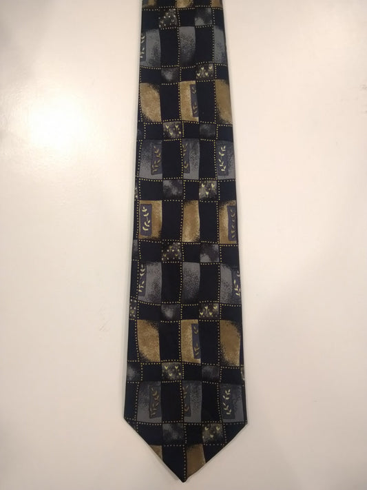 Skopes polyester stropdas. Apart blauw grijs geel motief.