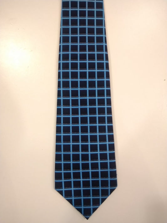 Rael Brook polyester stropdas. Blauw vierkant motief.