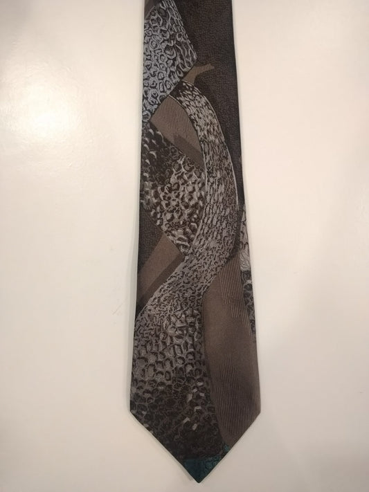 Rael Brook polyester stropdas. Grijs bruin groen zilver glanzend motief.