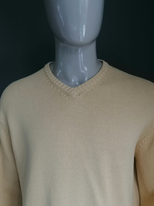 NY Coton Cotton Pullover mit V-Ausschnitt. Gelb gefärbt. Größe xxl / 2xl.