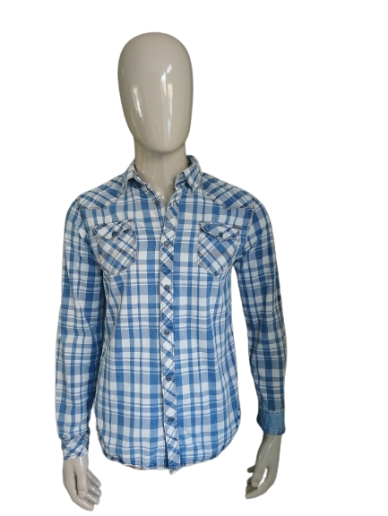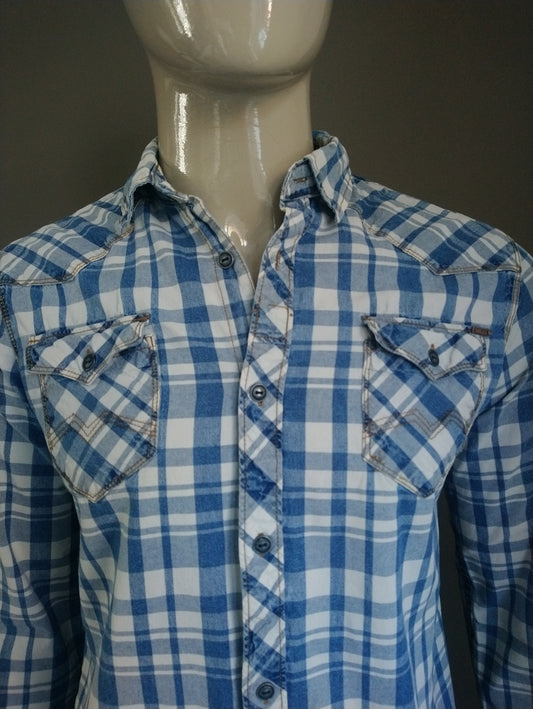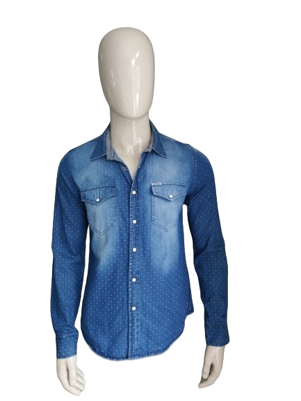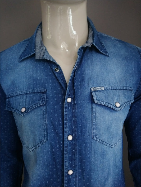 Garcia -Hemd mit Pressebutter. Blaudruck. Denim -Look. Größe M.