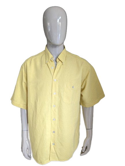Vintage Pohland Exklusiv -Leinenhemd mit größeren Knöpfen. Gelb gefärbt. Größe 2xl / xxl.