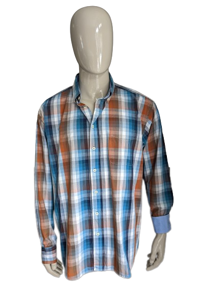 Das heutige Mannhemd. Blaubraunes Orange blockiert. Größe xxl / 2xl. Normale Passform.