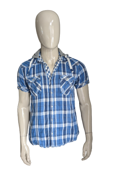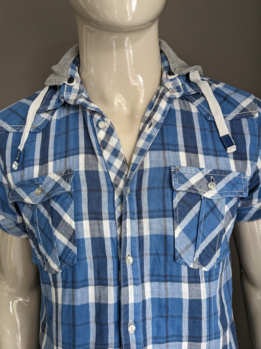 Soho -Shirt Kurzarm mit Kapuze. Blau Schwarz -Weiß. Größe M.