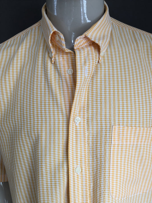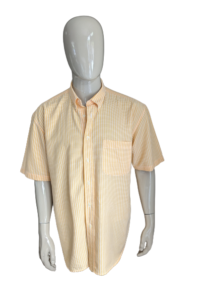 Quadrus -Shirt Kurzarm. Gelbbraunes Blau überprüft. Größe L / XL.