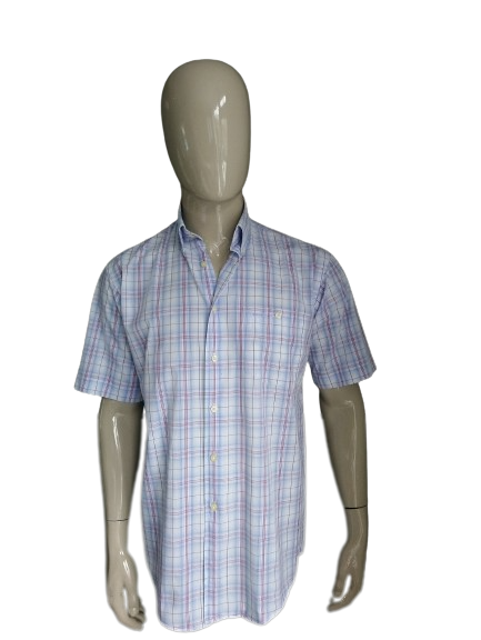 Gusseisen -Hemd Kurzarm und Doppelkragen. Lila rosa schwarz -weiß -karierte. Größe xl.