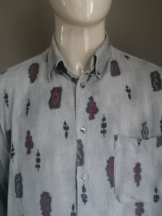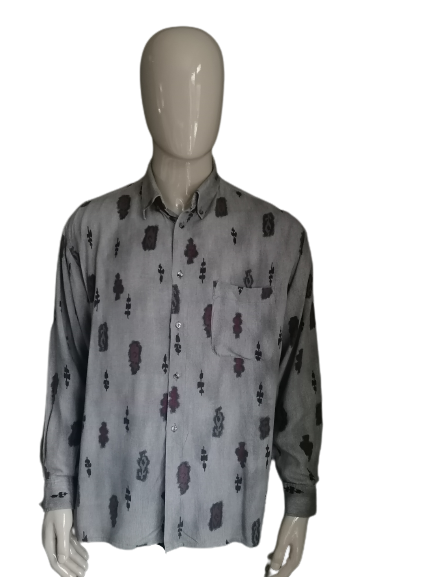 Vintage Tacot Bleu -Shirt. Grauer brauner Rotdruck. Größe xl. 100% Viskose.