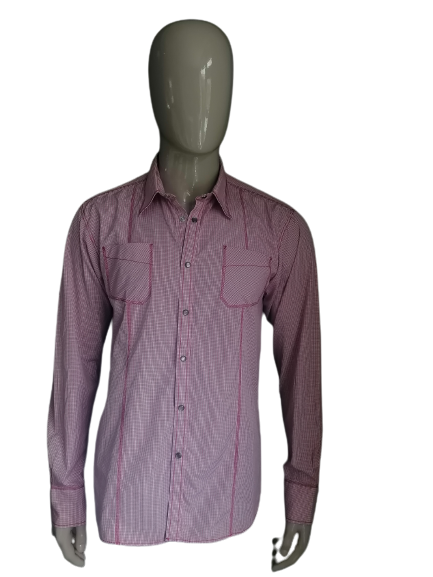 Ausgewähltes Hemd mit Pressebutter. Rotblau überprüft. Größe xl.
