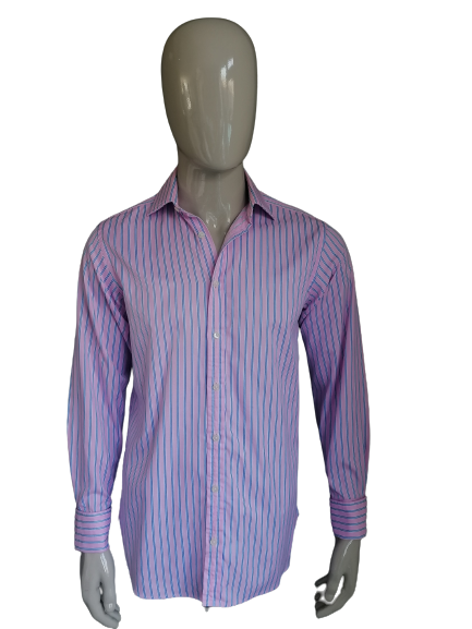Thomas Pink Hemd. Rosa blau weiß gestreift. Größe 38 / M. Art des Manschettenknotens.