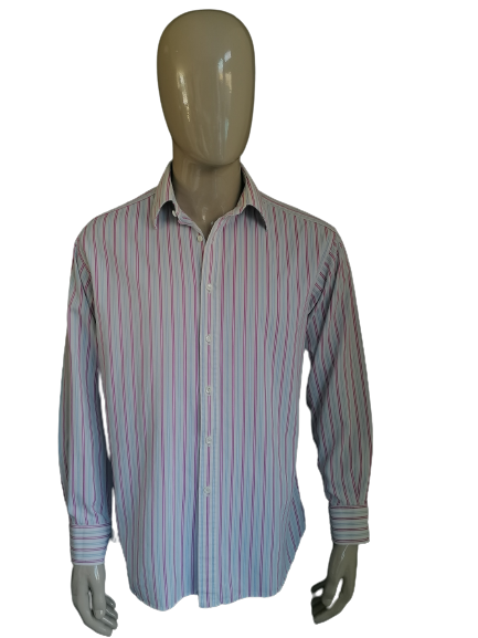 Thread & Knochenhemd. Weiß rosa blau gestreift. Größe 42 / L.