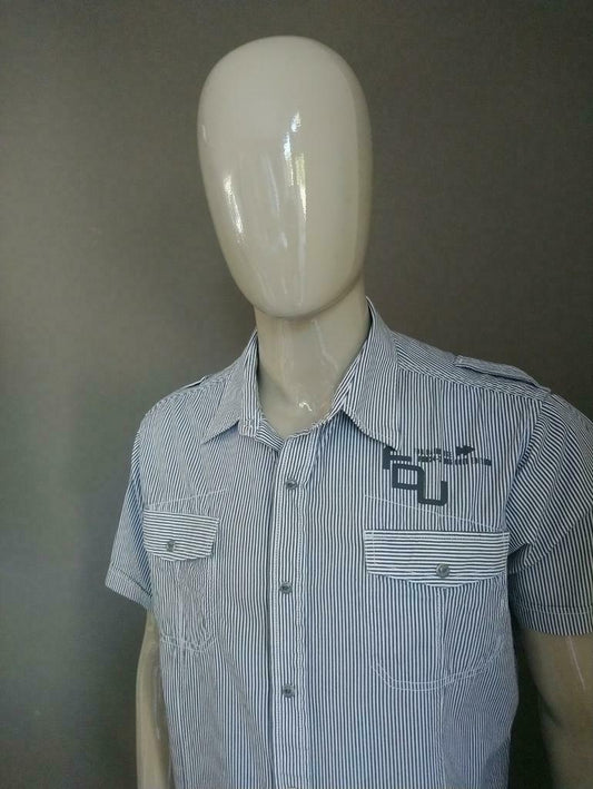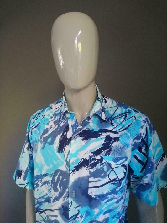 Vintage-Hemd mit kurzen Ärmeln. Blau Weiss. † Größe XL.