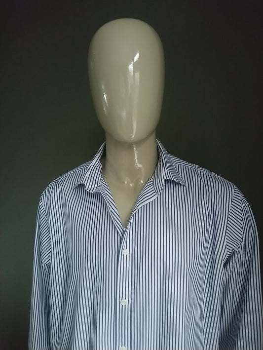 The. Lewin-Hemd. Blau Weiss. Manschettenknopf. Größe XXL.