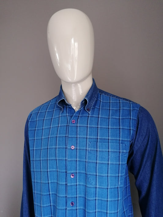 Galerien Lafayette Shirt. Blaues kariertes Motiv. Größe M.