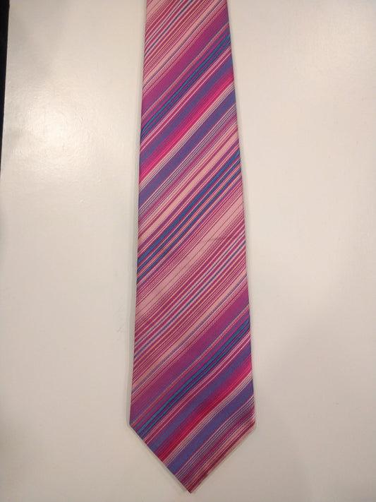 Marks & Spencer Autogramm Seidenkrawatte. Rosa lila blau gestreift.