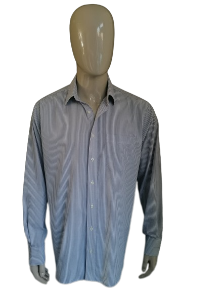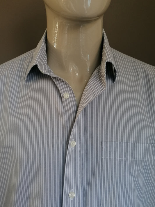 Marks & Spencer-Hemd mit kurzem Bauernkragen. Beigeblau gestreift. Größe XL.