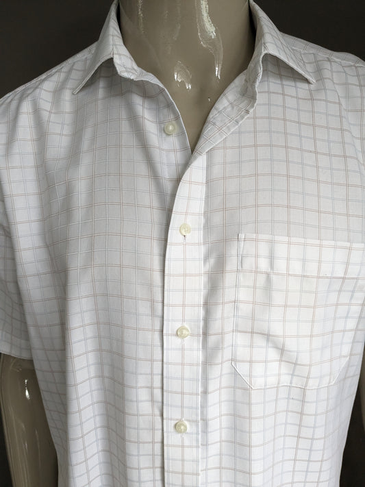 Markierungen & Spencer Schneiderei -Hemd Kurzarm. Weiße blau braune Linie. Größe 42 / L.