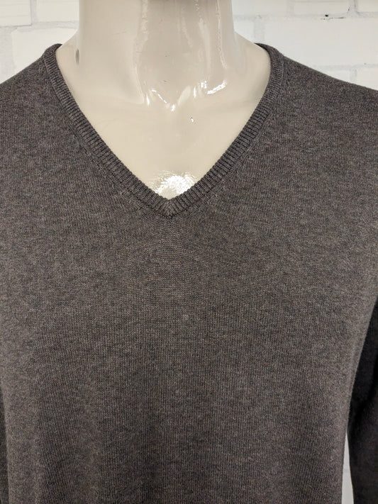Boss Hugo Chef Wollpullover mit V-Ausschnitt. Dunkelgrau gemischt. Größe 2xl / xxl. 100% Wolle.